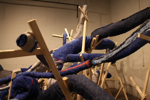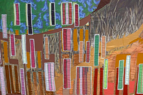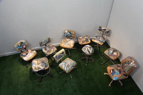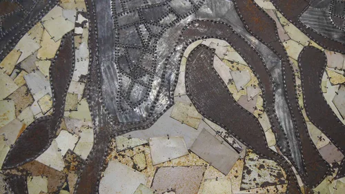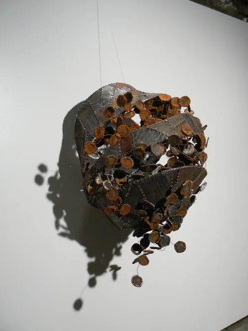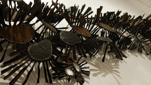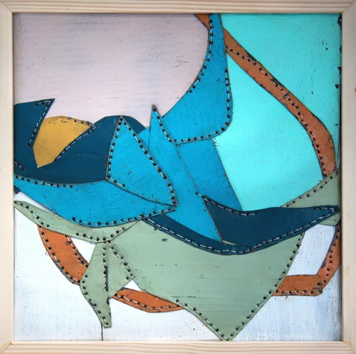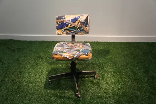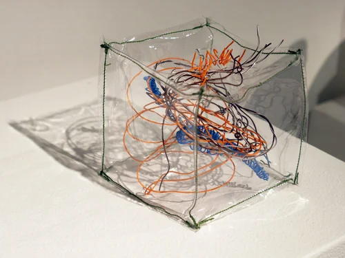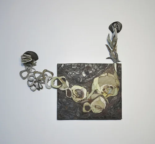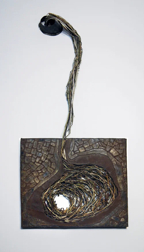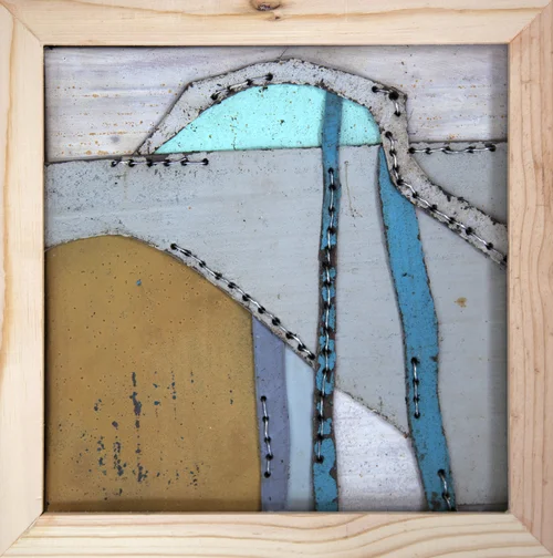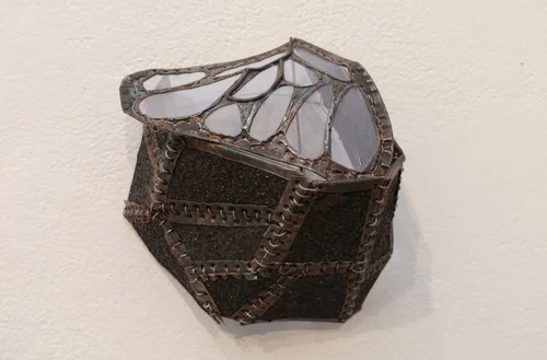 What began as an engagement with outside forces led to an encounter with interiors. Not the interiors of the museum but my own perception of them and what their energetic field brought to light within me. I wandered the halls of an otherworldly landscape, like that of a dream or nightmare, where one meets things that don’t just exist out there. Time collapsed. Things called out in the dark. Their story was also my story. The framed objects manifest an inner feeling which I can’t quite name. Realizations of the self discovered with a flashlight taped to a ballcap.