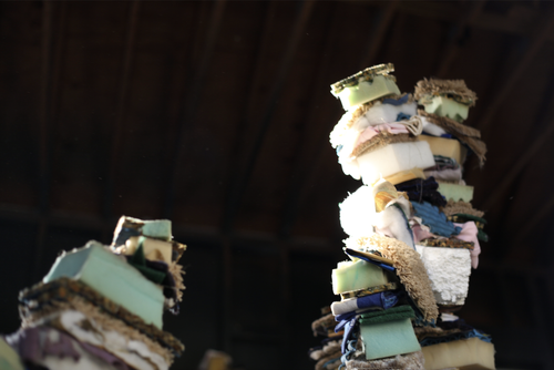 This work was created during a 4-week fellowship at the Elsewhere museum in the Summer of 2022, using only materials, objects and sounds from the museum collection. The multiple floors, crowded rooms and hallways of Elsewhere once existed as a boarding house and furniture store then evolved into a peculiar type of thrift shop where the owner Sylvia Gray would vary prices on a whim depending on her assessment of the prospective buyer’s connection to the desired item. It is a labyrinthine building like something from a fairy tale. An ever-changing museum with an abundance of toys, fabric, ribbon, mirrors, collectibles, knickknacks, books and art. An odd collection of vibrant materials that brim with history and character.